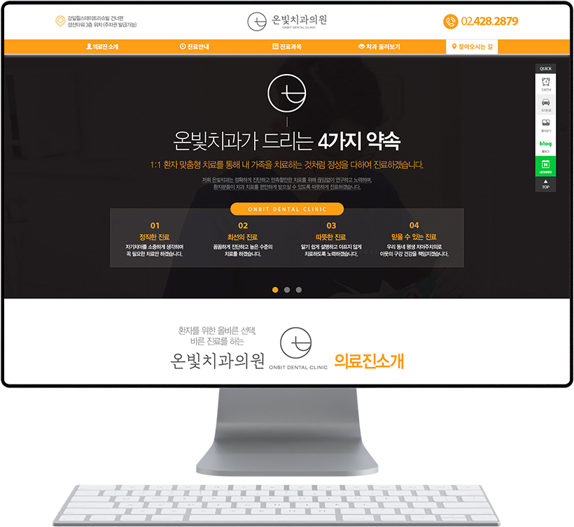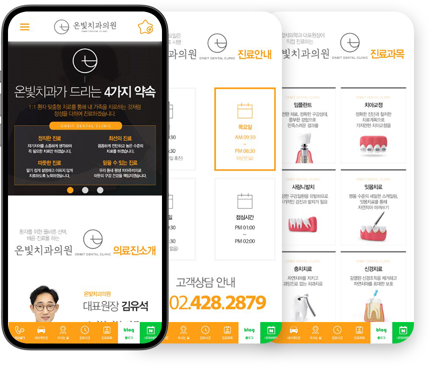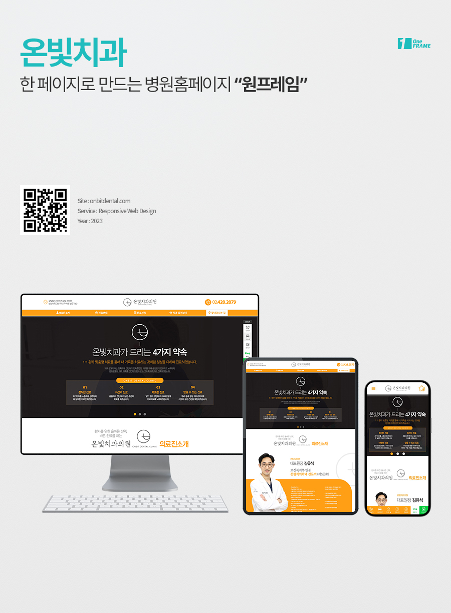 온빛치과 (서울시 강동구 강일동) - 병원 원페이지 치과 홈페이지제작 업체 - (반응형/1페이지 포트폴리오) - 한페이지 제작 비용 문의 - 원프레임 추천 - 제작기간 1주일