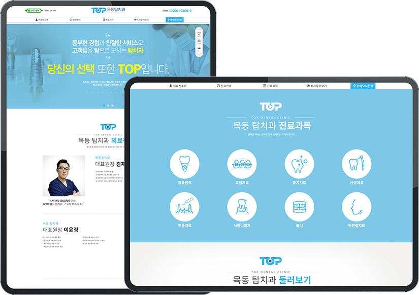 목동탑치과-(서울 양천구)-병원 홈페이지제작-(반응형/1페이지)