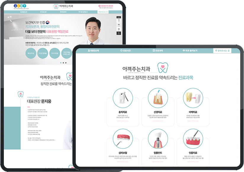 아껴주는치과-(서울시 동대문 전농동) - 병원 원페이지 치과 홈페이지제작 업체 - (반응형/1페이지 포트폴리오) - 한페이지 제작 비용 문의 - 원프레임 추천 - 제작기간 1주일