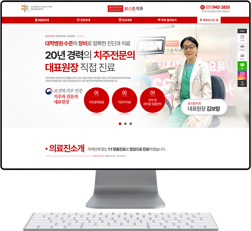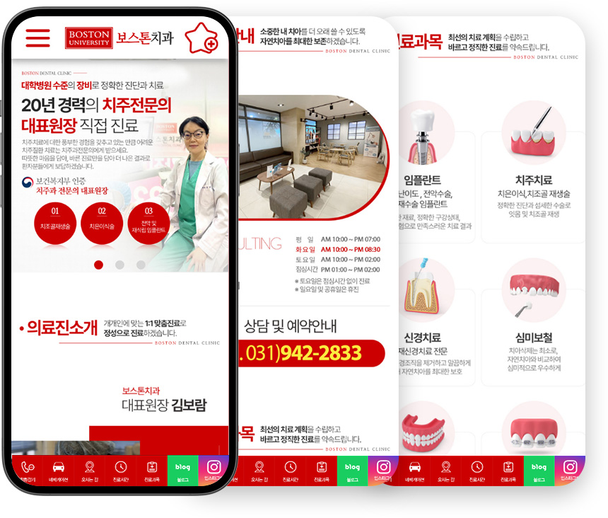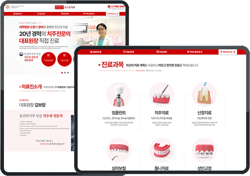 보스톤치과-(파주 운정)-병원 홈페이지제작-(반응형/1페이지)
