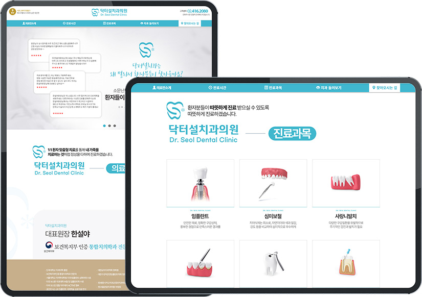 연출하고 싶다는 원장님의 니즈를 반영하여 디자인했습니다. 그 결과, 블루계열 로고와