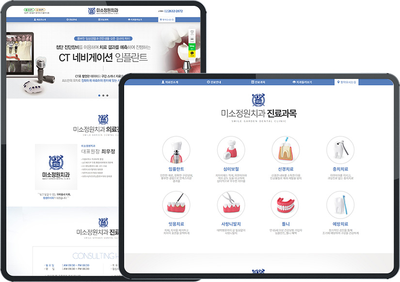 미소정원치과-(서울 영등포구)-병원 홈페이지제작-(반응형/1페이지)