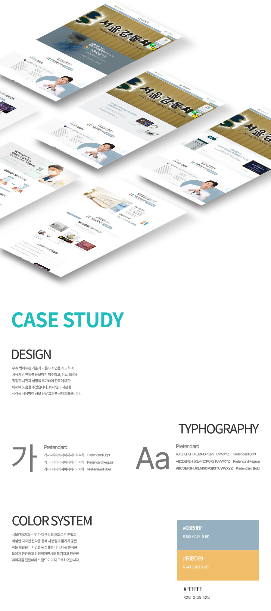 Pretendard Bold, Pretendard Regular, Pretendard Light 사용하여 가독성을 높였습니다.