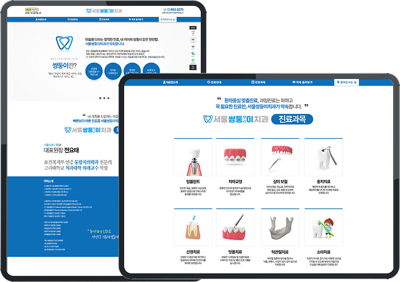서울쌍둥이치과-(서울시 노원구 동일로)-병원 홈페이지제작-(반응형/1페이지)