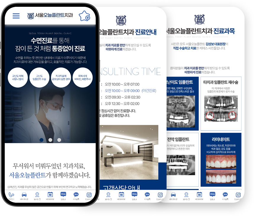 서울오늘플란트치과-(서울시 관악구 신림동)-병원 홈페이지제작-(반응형/1페이지)
