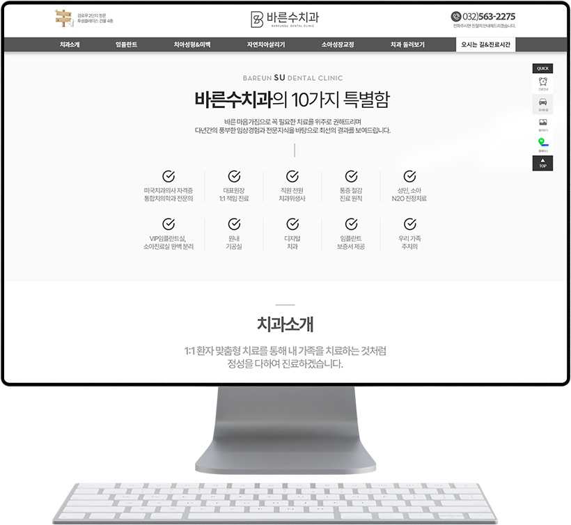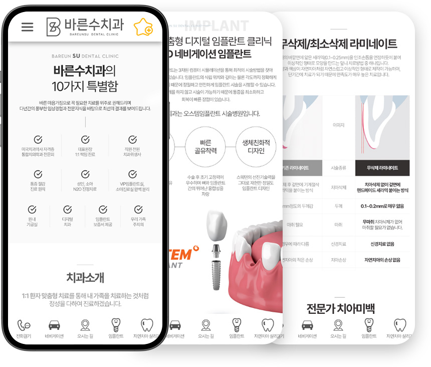 바른수치과-(인천 서구 백석동)-병원 홈페이지제작-(반응형/1페이지)
