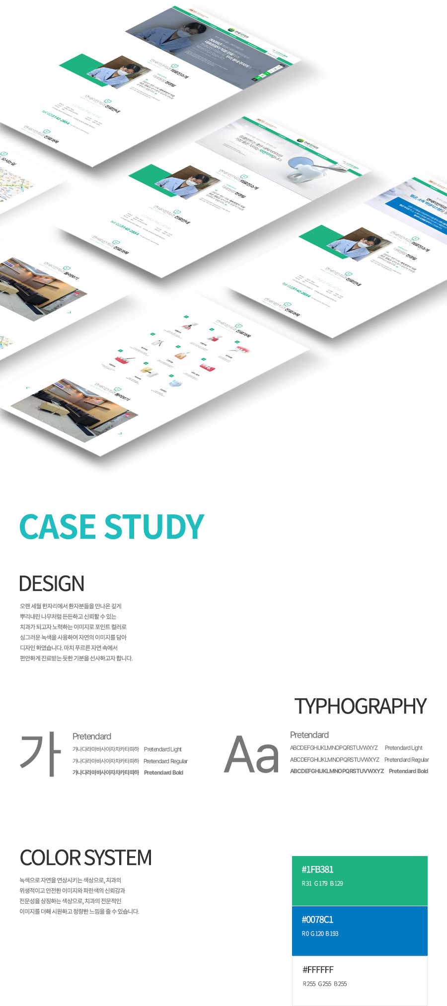 녹색으로 자연을 연상시키는 색상으로, 치과의 위생적이고 안전한 이미지와