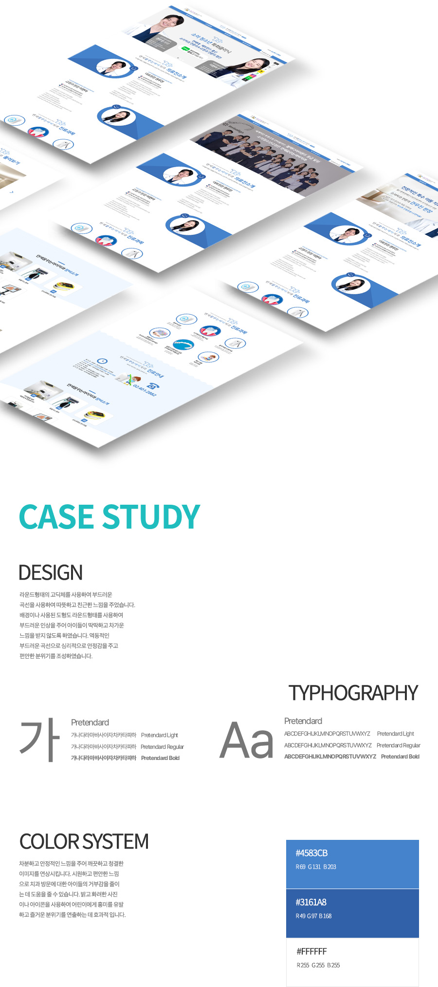 배경이나 사용된 도형도 라운드형태를 사용하여 부드러운 인상을 주어 아이들이 딱딱하고 차가운 느낌을 받지 않도록 하였습니다.