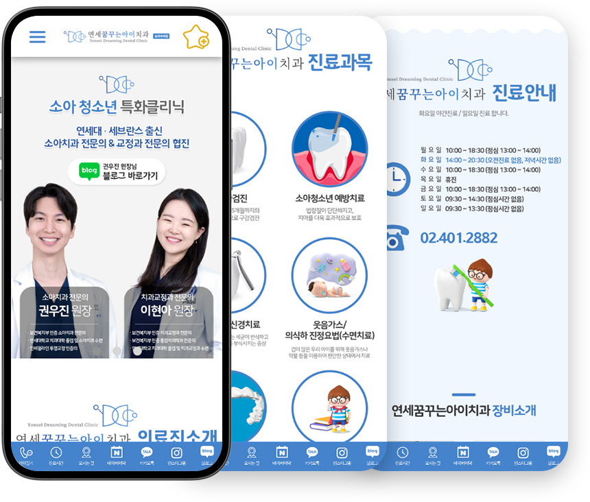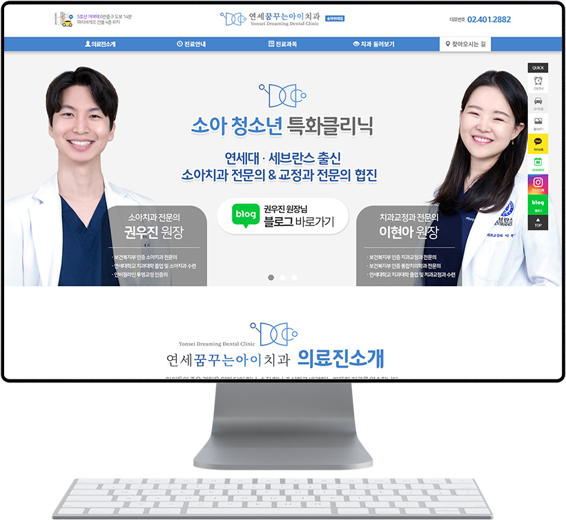 연세꿈꾸는아이치과-(서울 송파구 거여동)-병원 홈페이지제작-(반응형/1페이지)