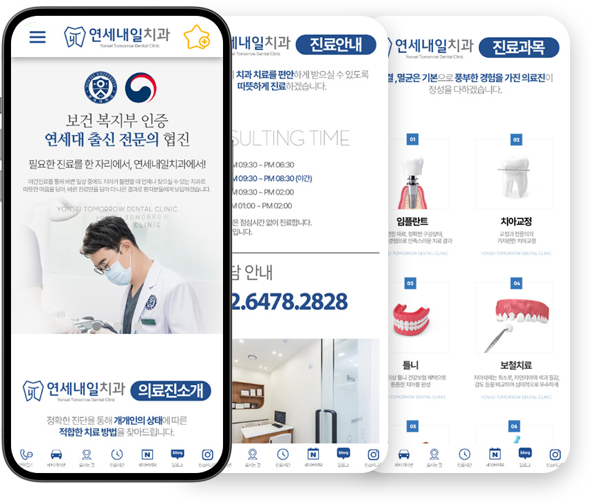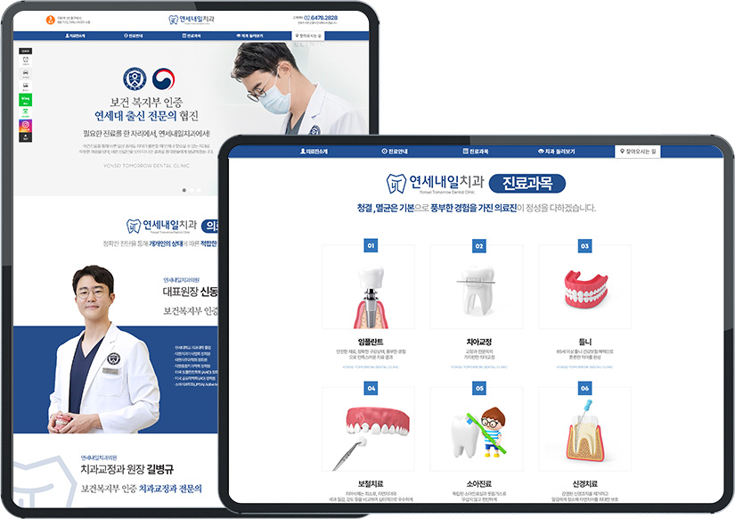 연세내일치과-(경기도 고양시 덕양구 지축동)-병원 홈페이지제작-(반응형/1페이지)