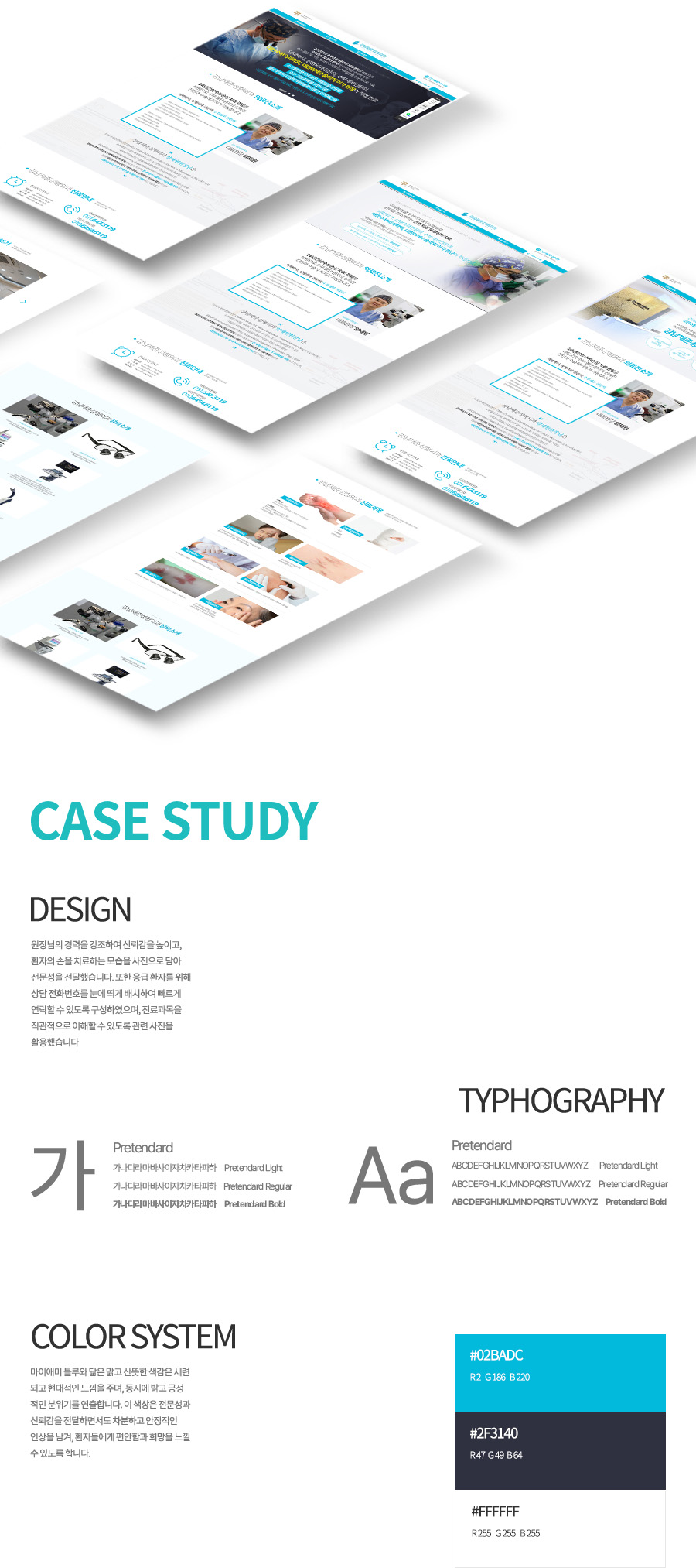 Pretendard Bold, Pretendard Regular, Pretendard Light 사용하여 가독성을 높였습니다.