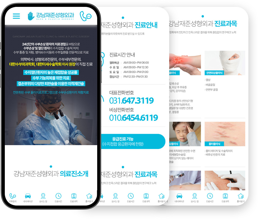 전문성을 전달했습니다. 또한 응급 환자를 위해 상담 전화번호를 눈에 띄게 배치하여 빠르게 연락할 수 있도록