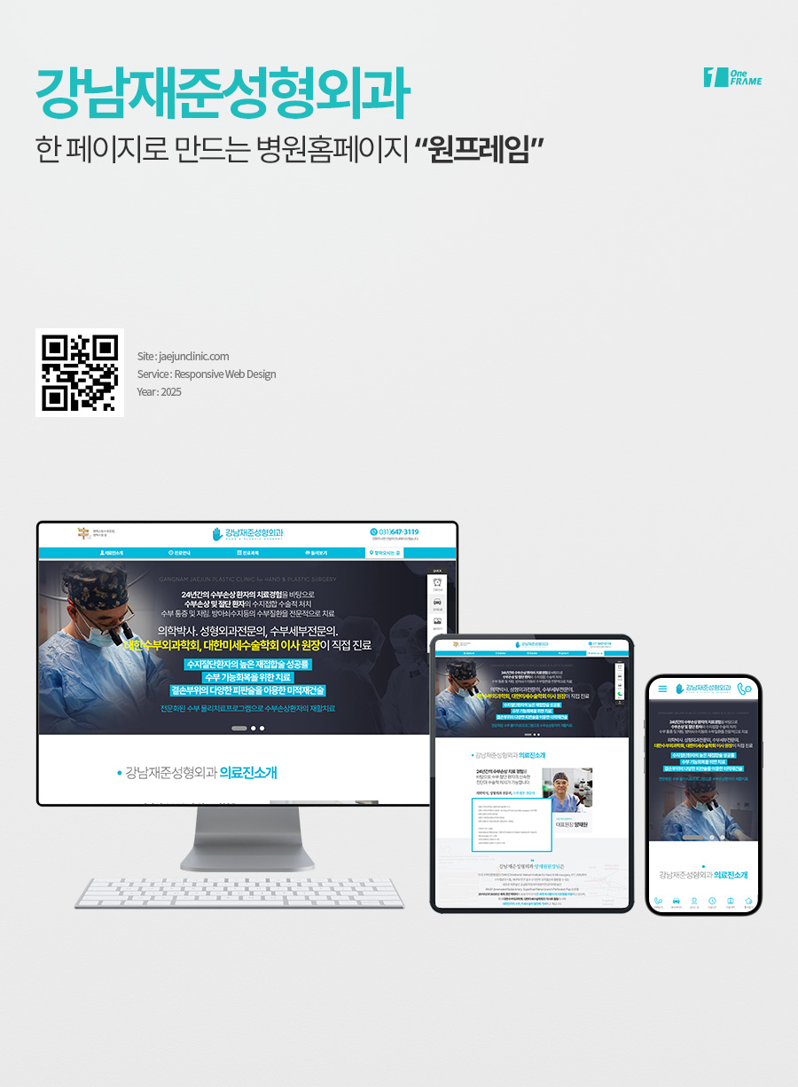 강남재준성형외과-(경기 평택시 합정동)-병원 원페이지 성형외과 홈페이지제작 업체 - (반응형/1페이지 포트폴리오 사례) - 한페이지 제작 비용 문의 - 원프레임 추천 - 제작기간 1주일