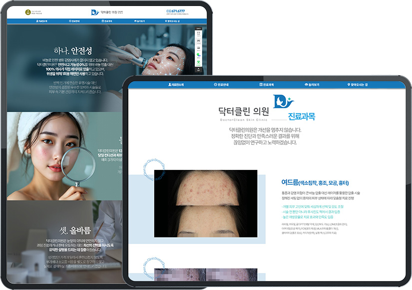 닥터클린의원-(경기도 부천시 원미구 중동)-병원 원페이지 피부과 홈페이지제작 업체 - (반응형/1페이지 포트폴리오 사례) - 한페이지 제작 비용 문의 - 원프레임 추천 - 제작기간 1주일