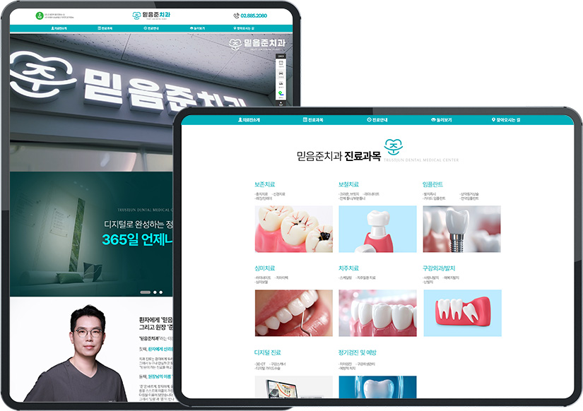 믿음준치과-(서울 관악구 봉천동)-병원 홈페이지제작-(반응형/1페이지)