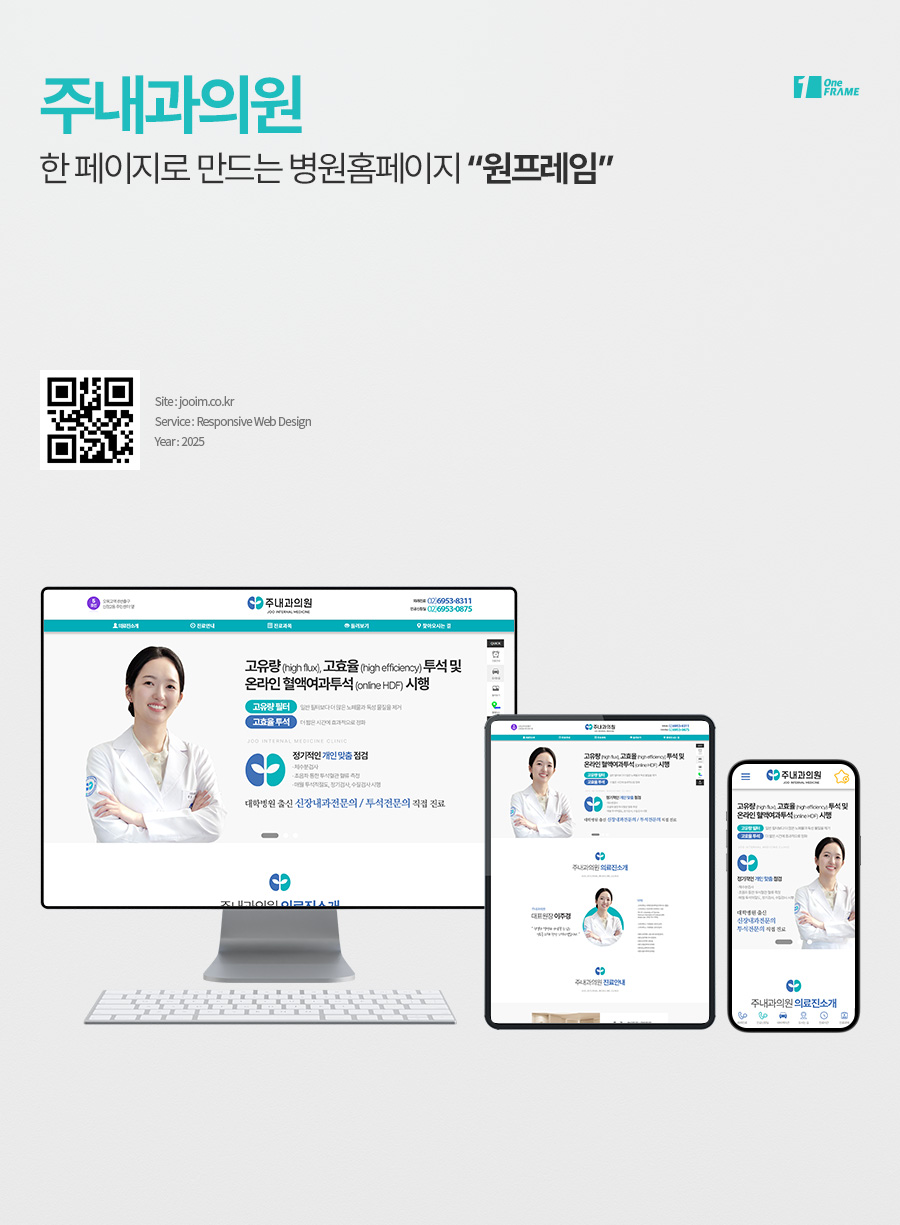 주내과의원-(서울 양천구 신정동)-병원 원페이지 내과 홈페이지제작 업체 - (반응형/1페이지 포트폴리오 사례) - 한페이지 제작 비용 문의 - 원프레임 추천 - 제작기간 1주일