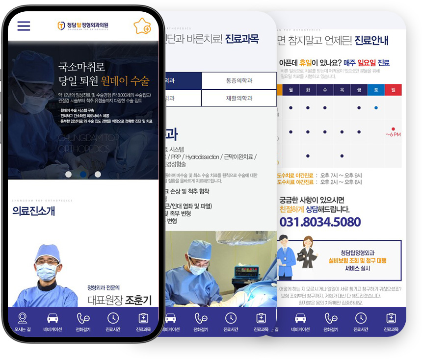 청담탑정형외과-(경기 남양주시)-병원 홈페이지제작-(반응형/1페이지)