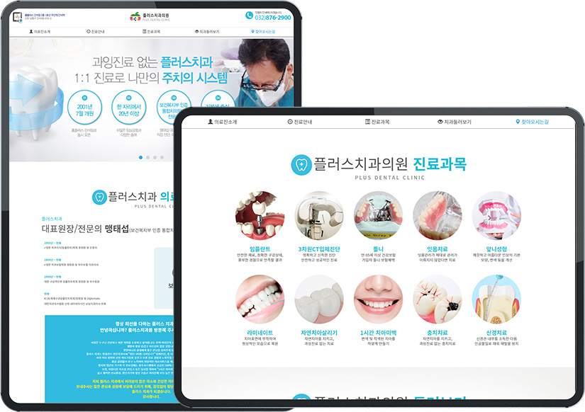 플러스치과-(인천 남동구)-병원 홈페이지제작-(반응형/1페이지)