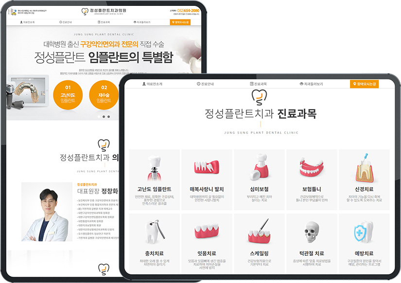 정성플란트치과-(경기 부천시)-병원 홈페이지제작-(반응형/1페이지)