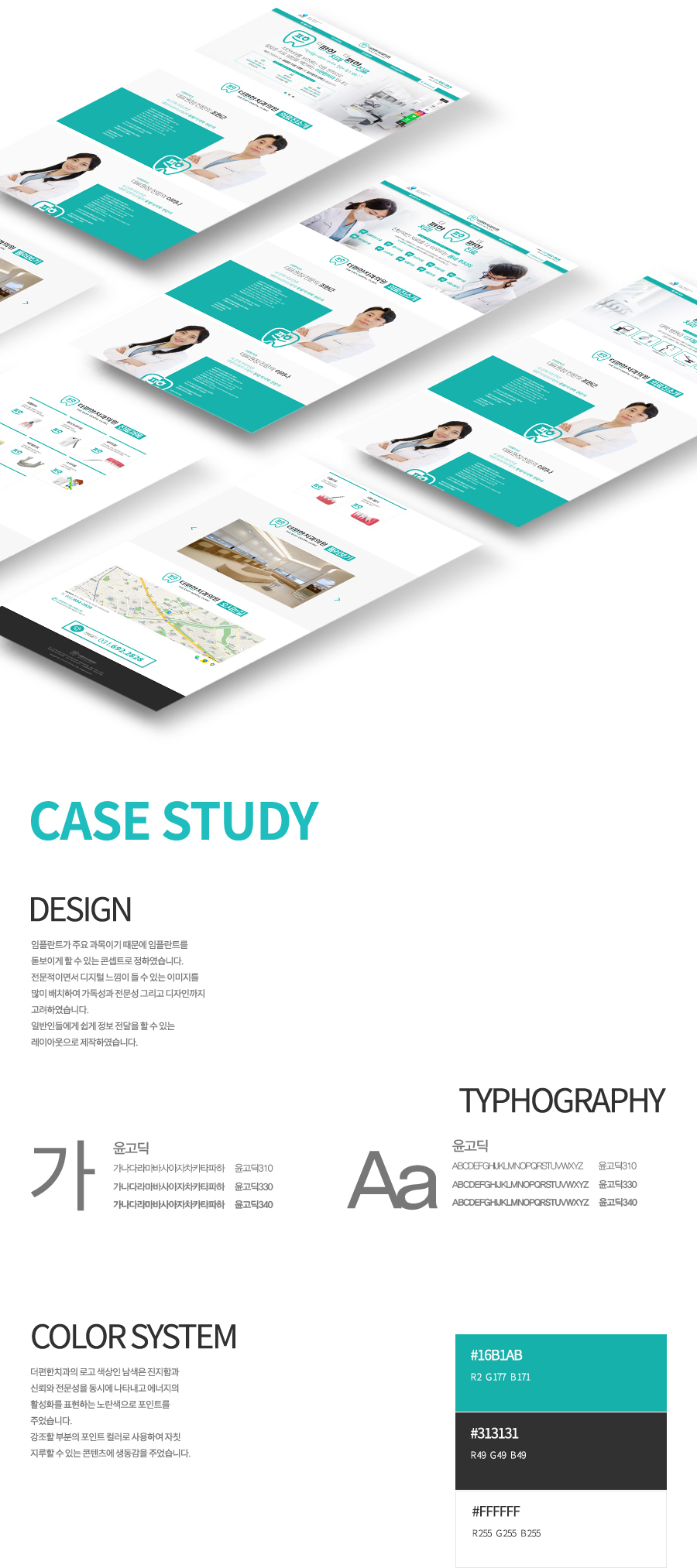 임플란트가 주요 과목이기 때문에 임플란트를 돋보이게 할 수 있는 콘셉트로 정하였습니다.