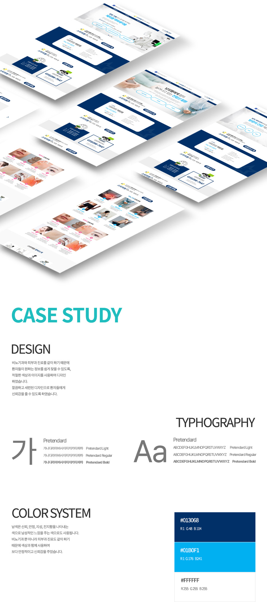 Pretendard Bold, Pretendard Regular, Pretendard Light 사용하여 가독성을 높였습니다.