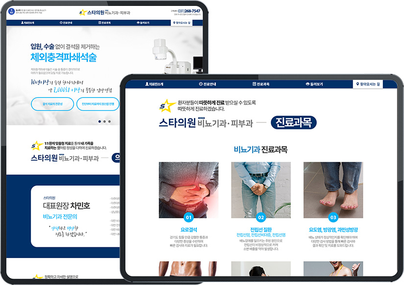 비뇨기과와 피부과 진료를 같이 하기 때문에 환자들이 원하는 정보를 쉽게 찾을 수 있도록,