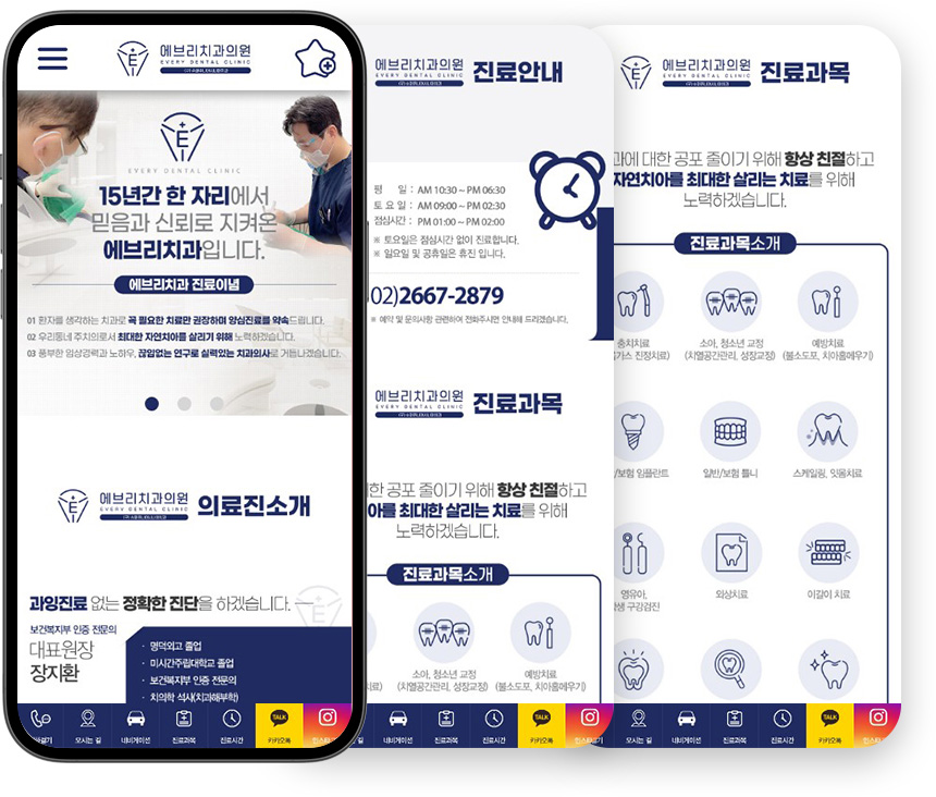 에브리치과-(서울시 강서구 내발산동) - 병원 원페이지 치과 홈페이지제작 업체 - (반응형/1페이지 포트폴리오) - 한페이지 제작 비용 문의 - 원프레임 추천 - 제작기간 1주일