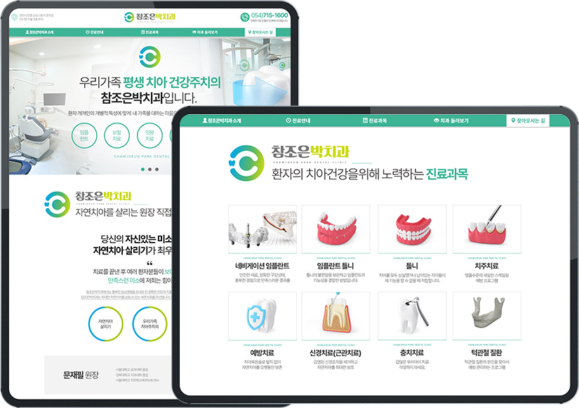 참조은박치과 (경북 영천시 완산동) - 병원 원페이지 치과 홈페이지제작 업체 - (반응형/1페이지 포트폴리오) - 한페이지 제작 비용 문의 - 원프레임 추천 - 제작기간 1주일