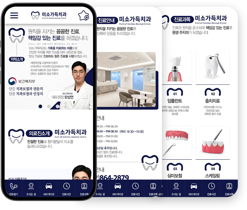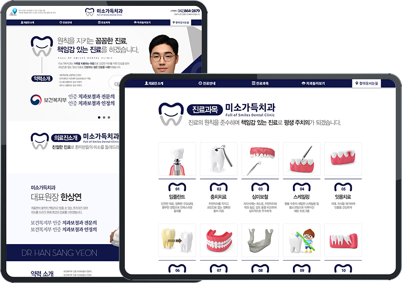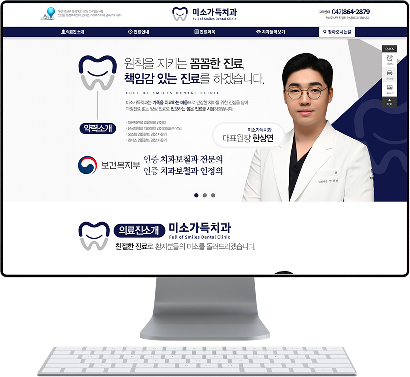 미소가득치과-(대전 유성구)-병원 홈페이지제작-(반응형/1페이지)