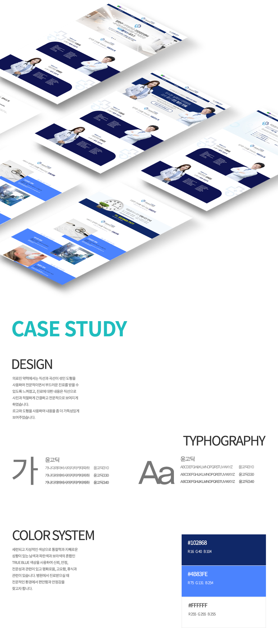 의료진 약력에서는 직선과 곡선이 섞인 도형을 사용하여 전문적이면서 부드러운 진료를 받을 수 있도록 느껴졌고,