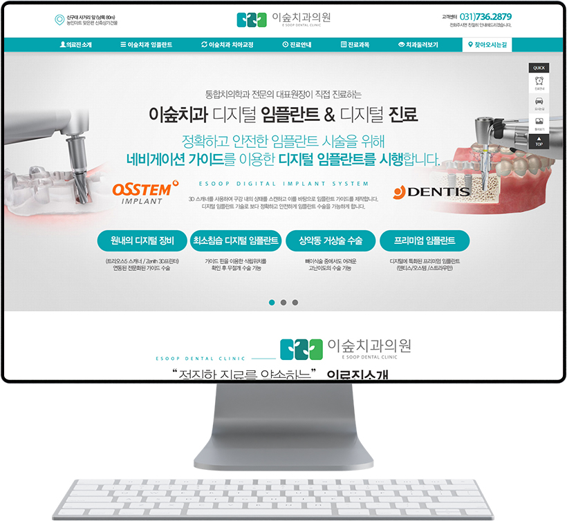 이숲치과-(경기 성남시)-병원 홈페이지제작-(반응형/1페이지)