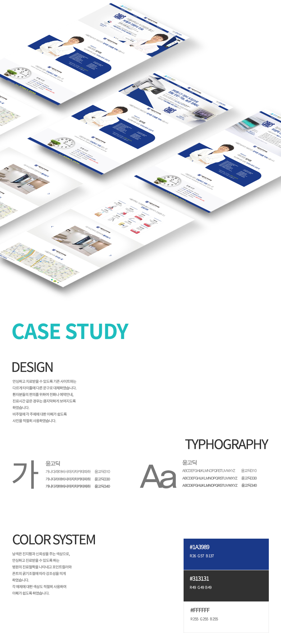 병원의 진료철학을 나타내고 포인트컬러와 폰트의 굵기조절에 따라 강조성을 띄게 하였습니다.